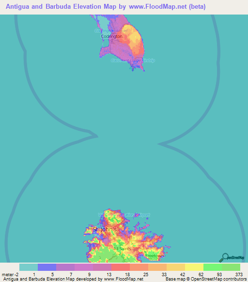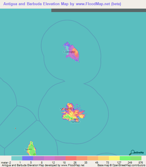 Note:Please note that Antigua and Barbuda Elevation Map is in alpha.