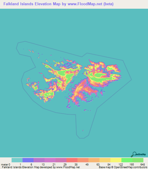Note:Please note that Falkland Islands Elevation Map is in alpha.