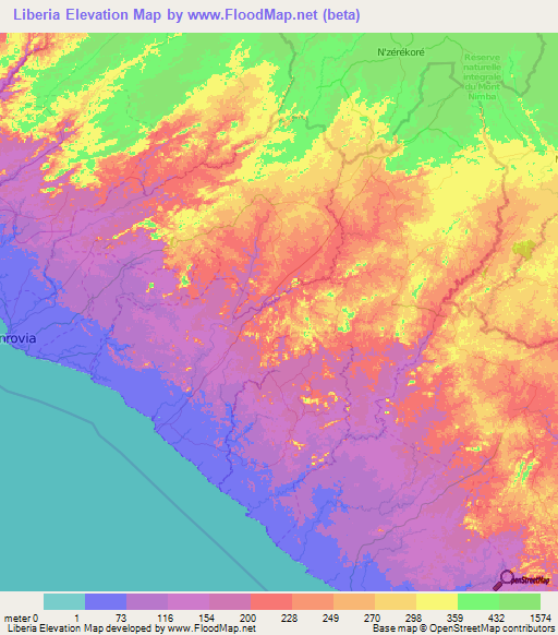 Below you will able to find elevation of major cities/towns/villages in Liberia along with their elevation maps.