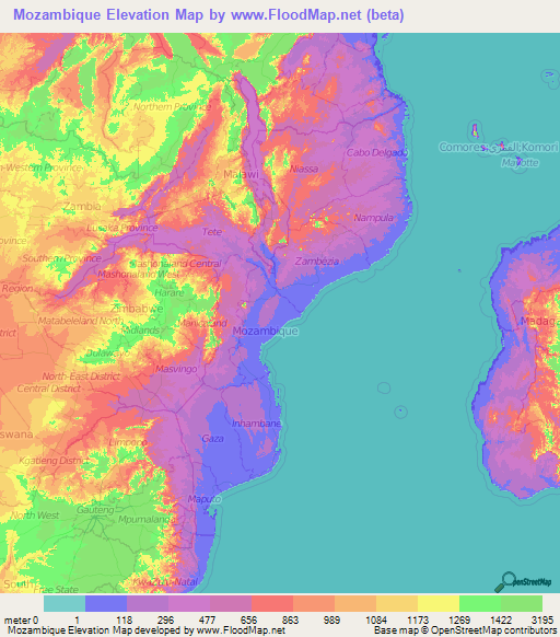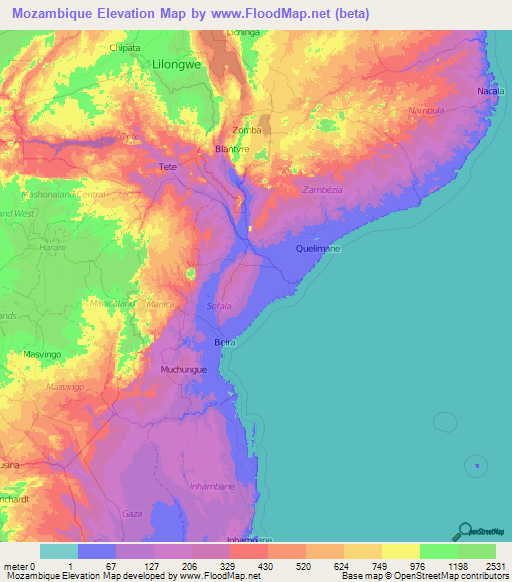 Note:Please note that Mozambique Elevation Map is in alpha.