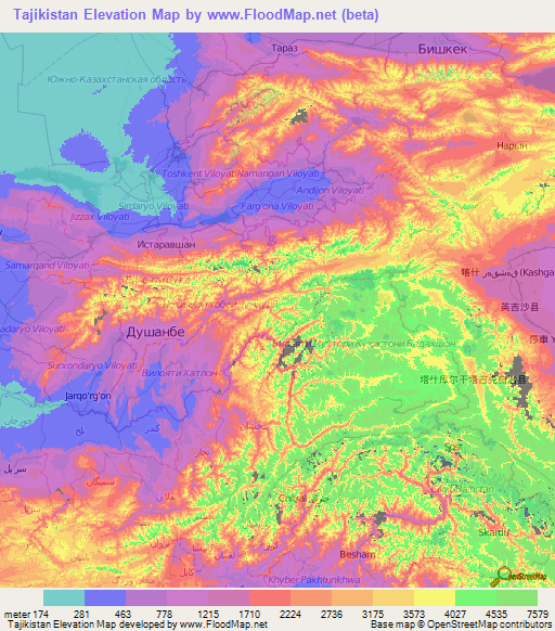 Note:Please note that Tajikistan Elevation Map is in alpha.