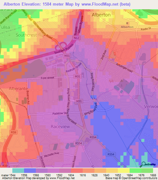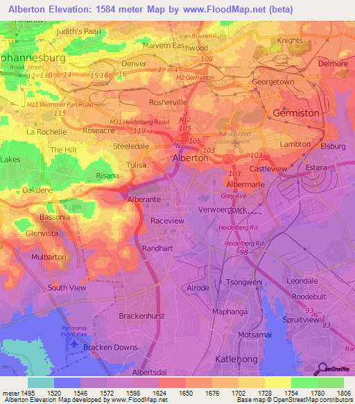 Note:Please note that Alberton,South Africa Elevation Map is in beta.