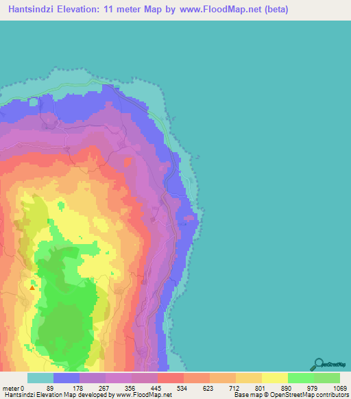 Note:Please note that Hantsindzi,Comoros Elevation Map is in beta.