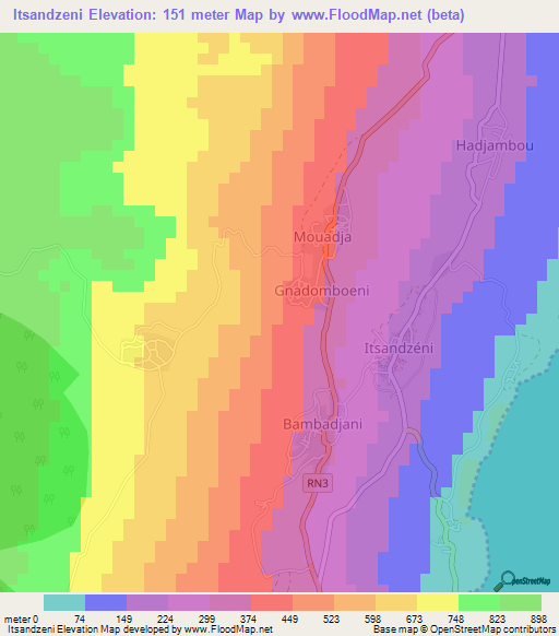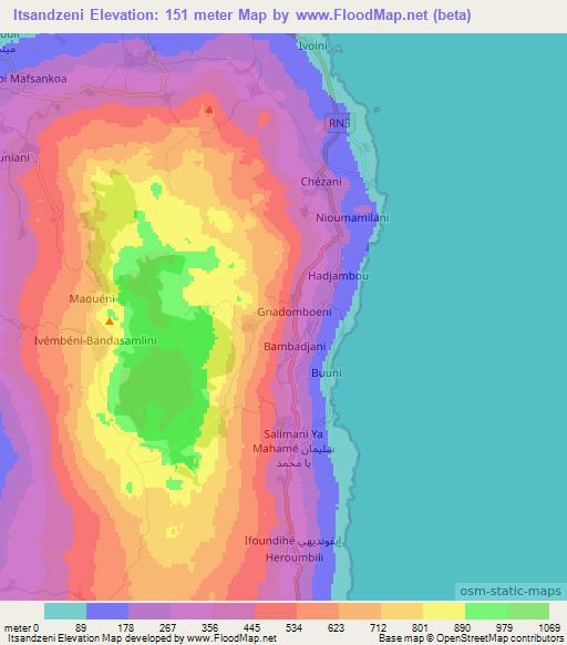 Note:Please note that Itsandzeni,Comoros Elevation Map is in beta.