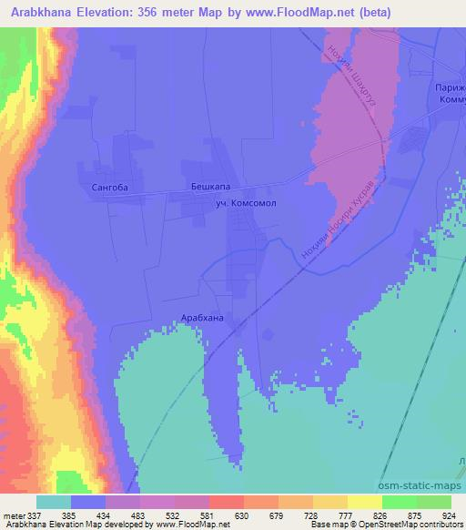 Note:Please note that Arabkhana,Tajikistan Elevation Map is in beta.