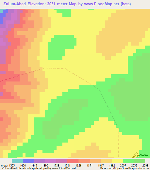 Below is the Elevation map of Zulum-Abad,Tajikistan, which displays range of elevation with different colours.