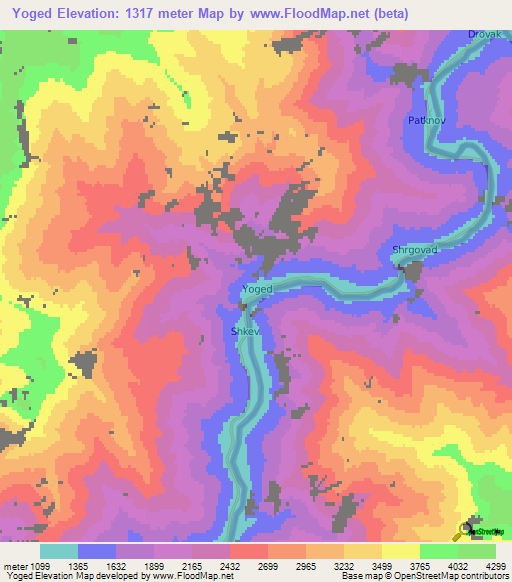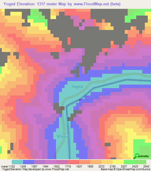 Note:Please note that Yoged,Tajikistan Elevation Map is in beta.