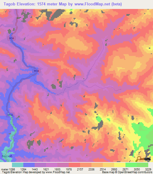 Note:Please note that Tagob,Tajikistan Elevation Map is in beta.