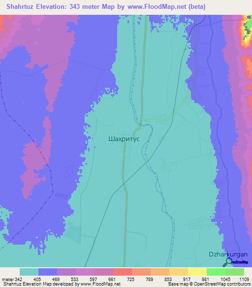 Note:Please note that Shahrtuz,Tajikistan Elevation Map is in beta.