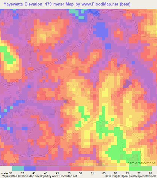 Yayewatta,Sri Lanka Elevation Map is displayed at different zoom levels.