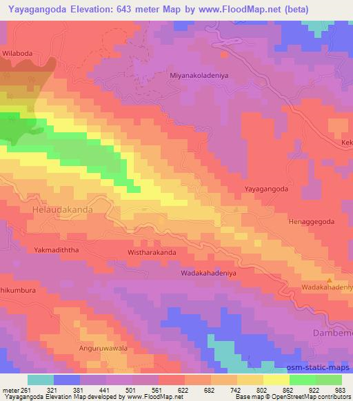 Yayagangoda,Sri Lanka Elevation Map is displayed at different zoom levels.