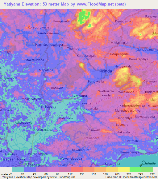 Note:Please note that Yatiyana,Sri Lanka Elevation Map is in beta.
