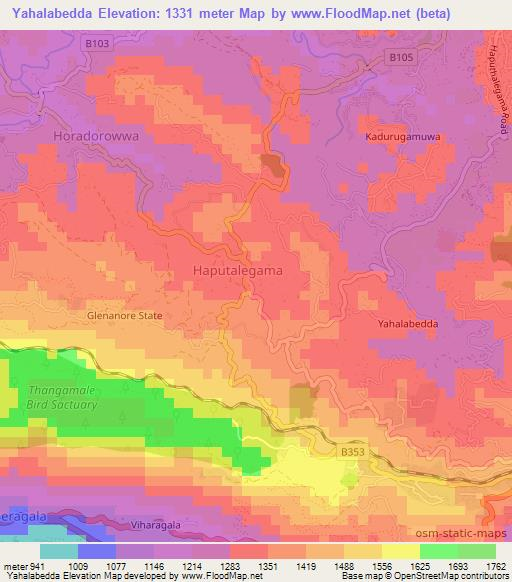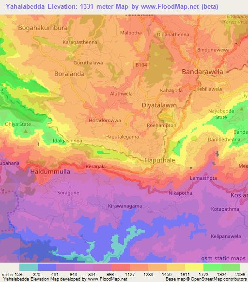 Note:Please note that Yahalabedda,Sri Lanka Elevation Map is in beta.