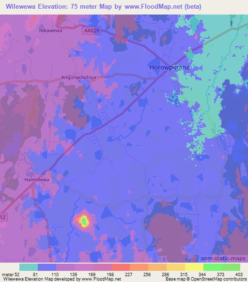 Wilewewa,Sri Lanka Elevation Map is displayed at different zoom levels.