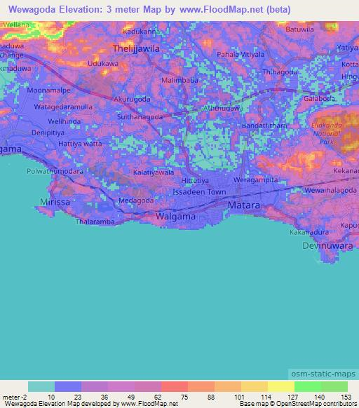 Wewagoda,Sri Lanka Elevation Map is displayed at different zoom levels.