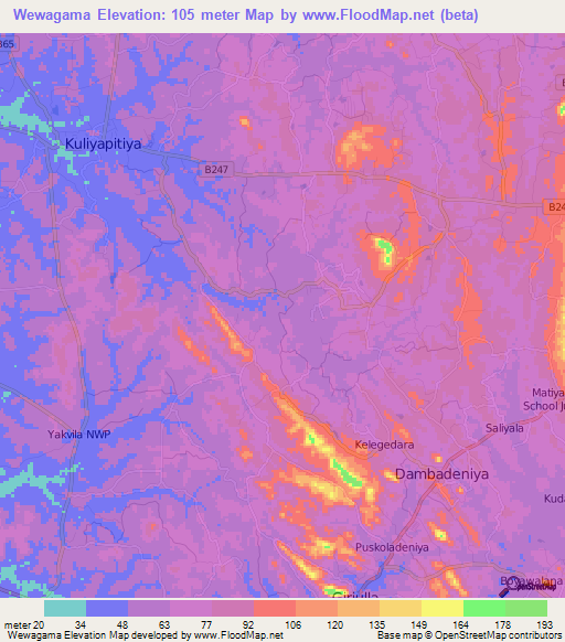 Note:Please note that Wewagama,Sri Lanka Elevation Map is in beta.