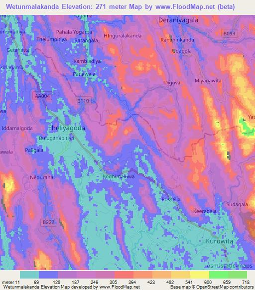 Note:Please note that Wetunmalakanda,Sri Lanka Elevation Map is in beta.