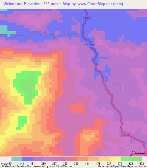 Below is the Elevation map of Welandura,Sri Lanka, which displays range of elevation with different colours.