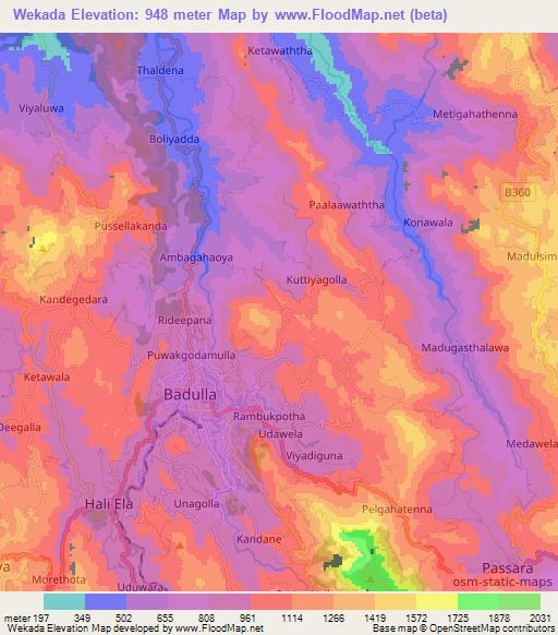 Note:Please note that Wekada,Sri Lanka Elevation Map is in beta.