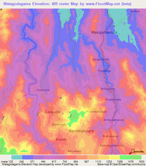You have to give credit by linking to this Watagodagama,Sri Lanka Elevation Map page.