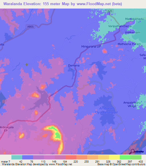 Note:Please note that Waralanda,Sri Lanka Elevation Map is in beta.