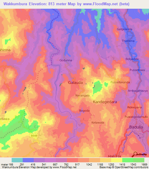 Note:Please note that Wakkumbura,Sri Lanka Elevation Map is in beta.