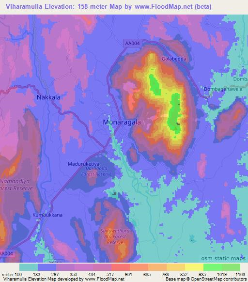 Note:Please note that Viharamulla,Sri Lanka Elevation Map is in beta.