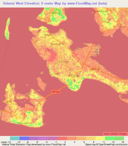Note:Please note that Velanai West,Sri Lanka Elevation Map is in beta.