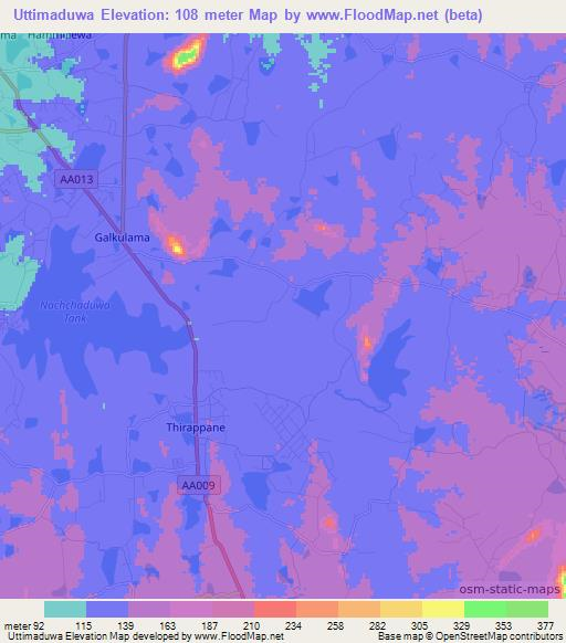 Note:Please note that Uttimaduwa,Sri Lanka Elevation Map is in beta.
