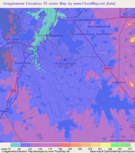 Unagaswewa,Sri Lanka Elevation is 95 meter