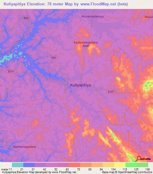 Note:Please note that Kuliyapitiya,Sri Lanka Elevation Map is in beta.