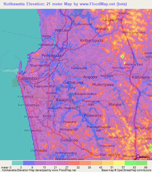 Note:Please note that Kotikawatta,Sri Lanka Elevation Map is in beta.