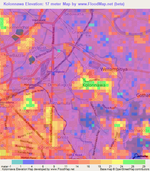 Note:Please note that Kolonnawa,Sri Lanka Elevation Map is in beta.