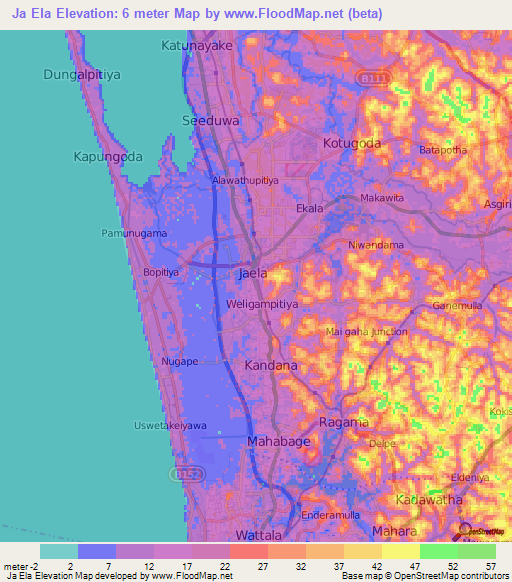 Note:Please note that Ja Ela,Sri Lanka Elevation Map is in beta.