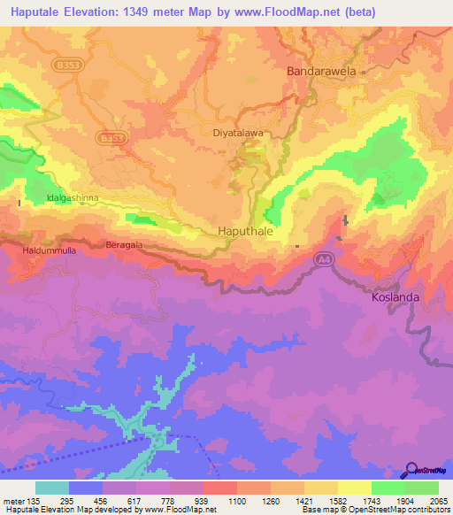 Note:Please note that Haputale,Sri Lanka Elevation Map is in beta.