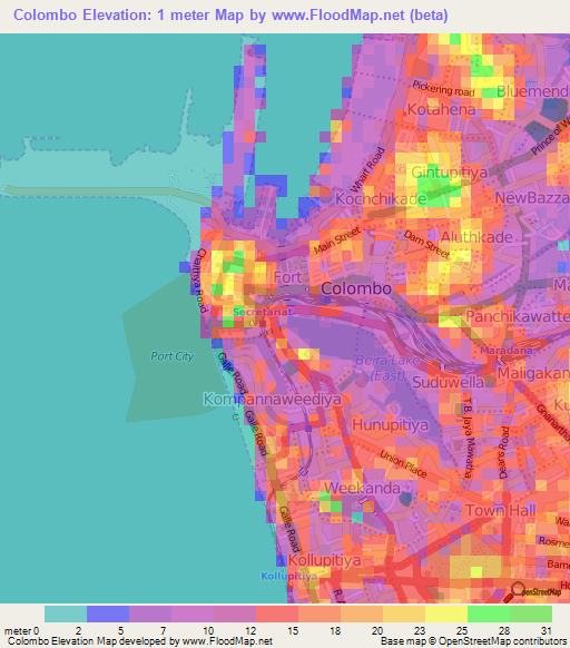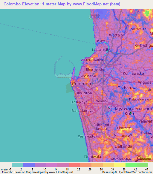 Note:Please note that Colombo,Sri Lanka Elevation Map is in beta.