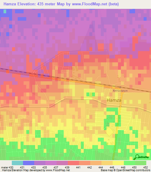 Below is the Elevation map of Hamza,Uzbekistan, which displays range of elevation with different colours.