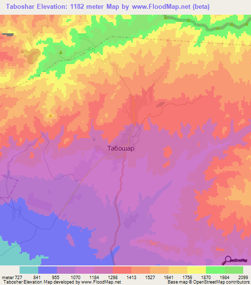 Note:Please note that Taboshar,Tajikistan Elevation Map is in beta.