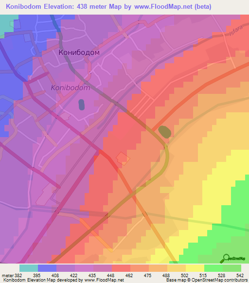 Note:Please note that Konibodom,Tajikistan Elevation Map is in beta.