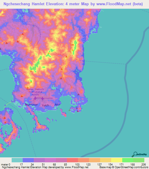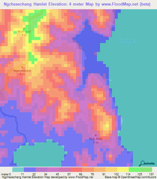 Note:Please note that Ngchesechang Hamlet,Palau Elevation Map is in beta.