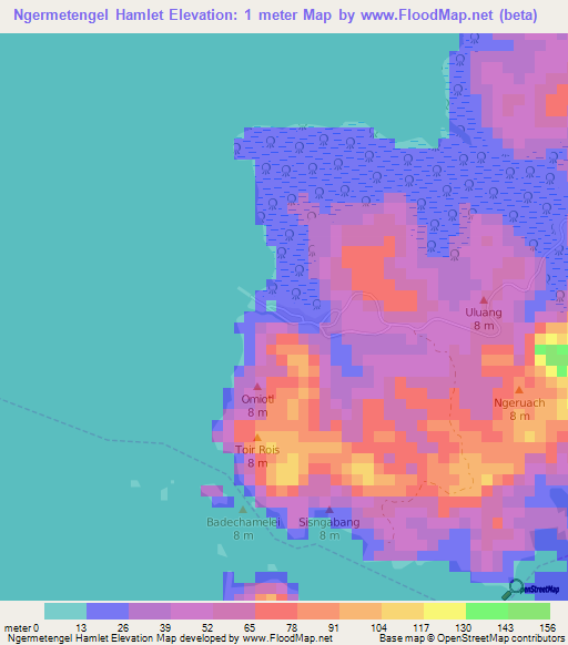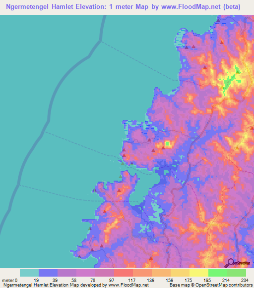 Note:Please note that Ngermetengel Hamlet,Palau Elevation Map is in beta.