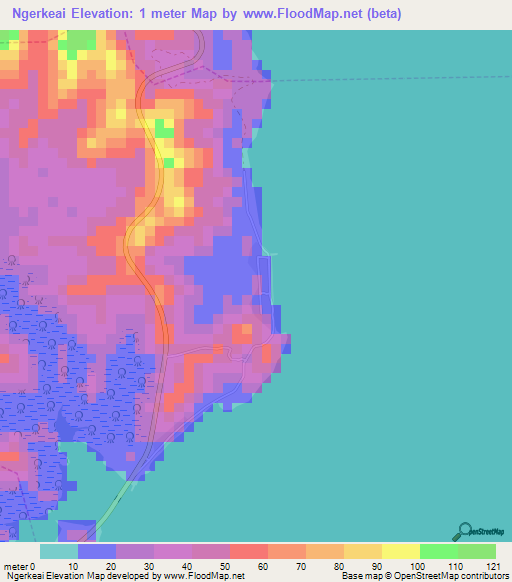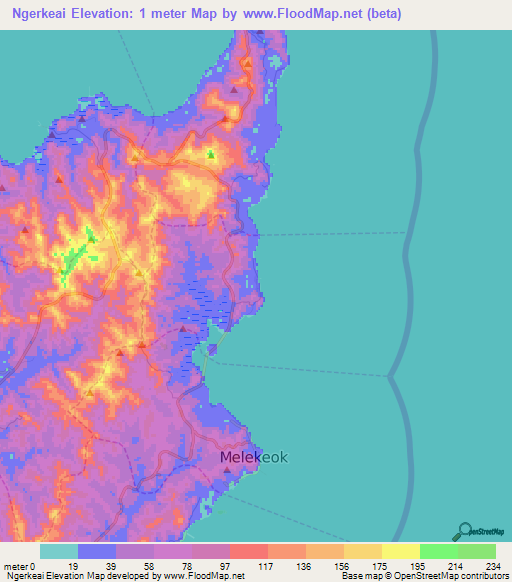 Note:Please note that Ngerkeai,Palau Elevation Map is in beta.