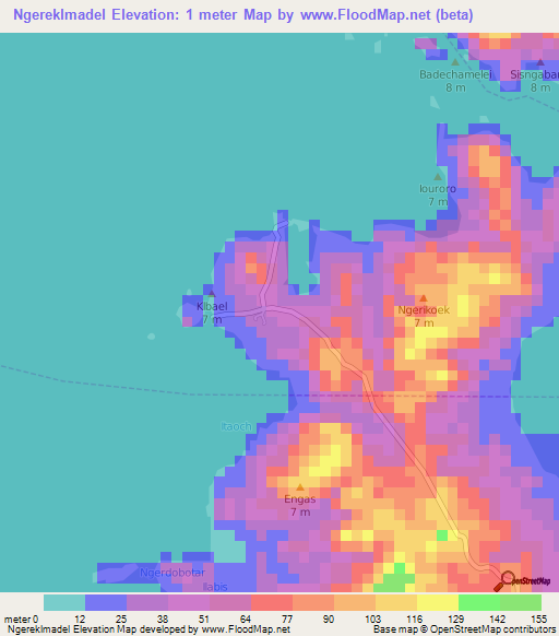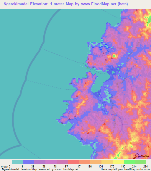 Note:Please note that Ngereklmadel,Palau Elevation Map is in beta.