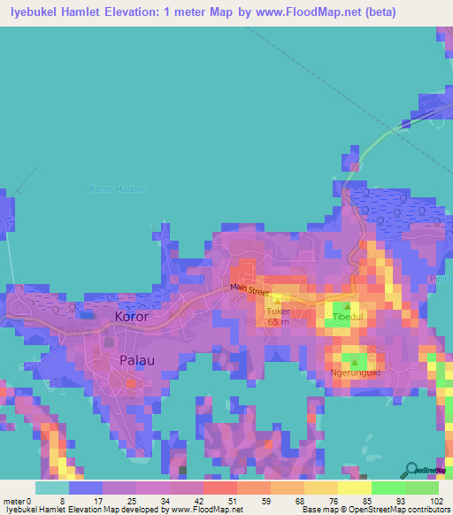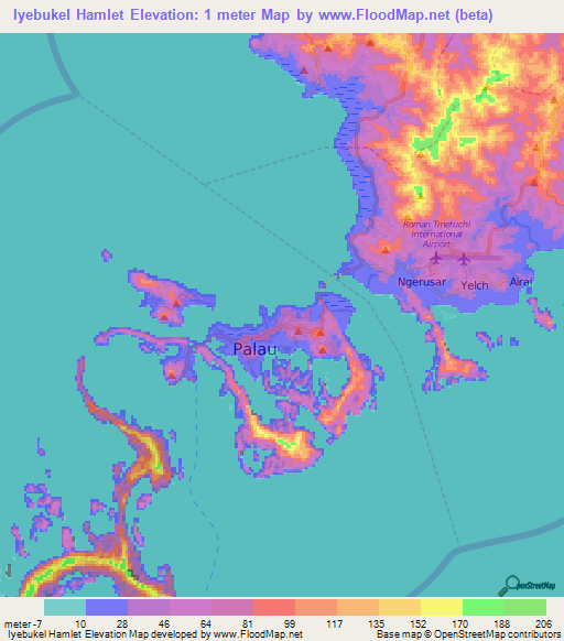 Note:Please note that Iyebukel Hamlet,Palau Elevation Map is in beta.