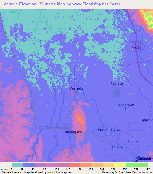 Note:Please note that Veruela,Philippines Elevation Map is in beta.