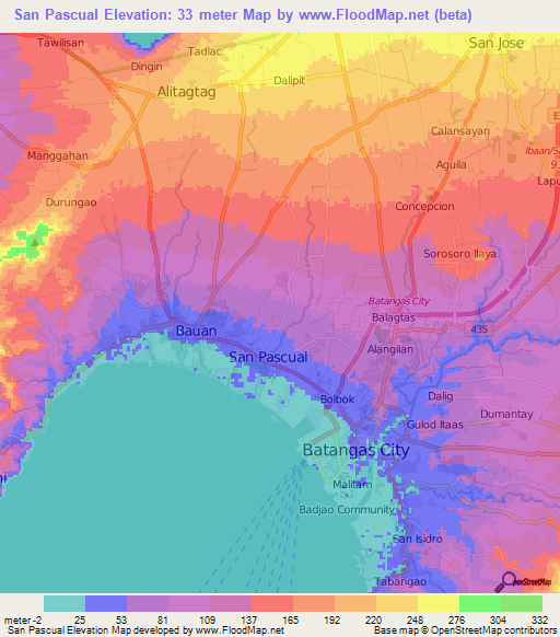 Note:Please note that San Pascual,Philippines Elevation Map is in beta.