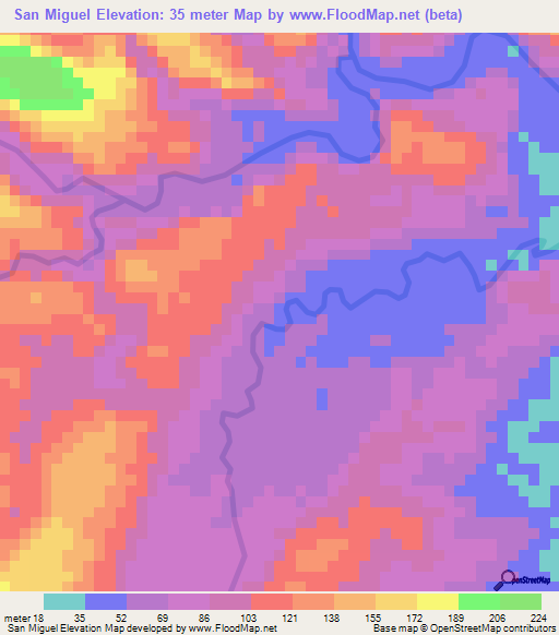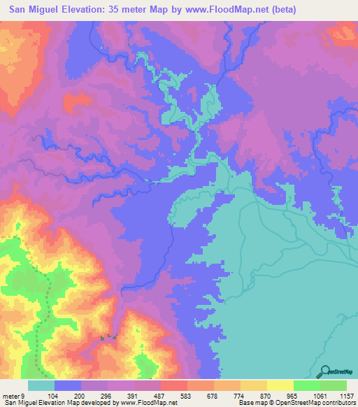 Note:Please note that San Miguel,Philippines Elevation Map is in beta.