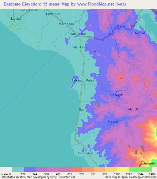 Note:Please note that Batobato,Philippines Elevation Map is in beta.