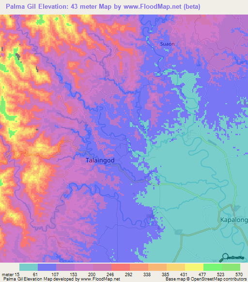 Note:Please note that Palma Gil,Philippines Elevation Map is in beta.