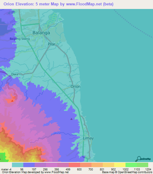 Note:Please note that Orion,Philippines Elevation Map is in beta.